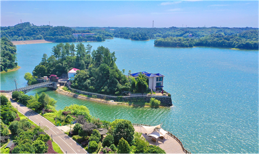 夏日的益阳东部新区鱼形湖,茂林修竹环绕,碧波荡漾,宛如一颗宝石,平添了几分醉人的秀色。( 市两型投纪委 姚光耀 摄)