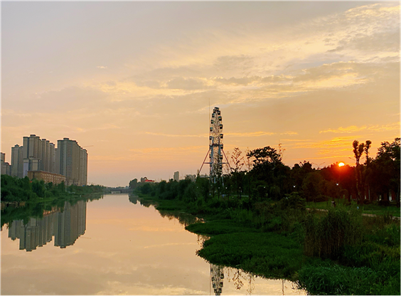 日晚菱歌唱,风烟满夕阳。夕阳西下,南县南茅运河沐浴在余晖中,霞光、湖水和建筑物组成了一幅美丽的画卷。(南县纪委监委驻县委办公室纪检监察组谢婷 摄)