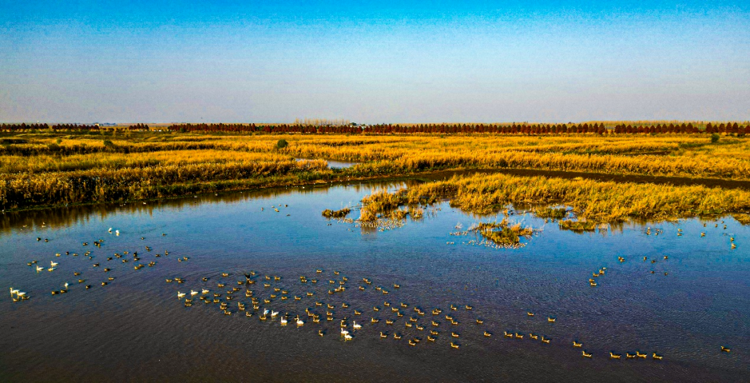湖南南洲国家湿地公园保育区天星洲,芳草萋萋、碧波荡漾、鸟类群集,让人领略到“万类霜天竞自由”的壮观景象。(南县摄影家协会供 陈颐龄 摄)