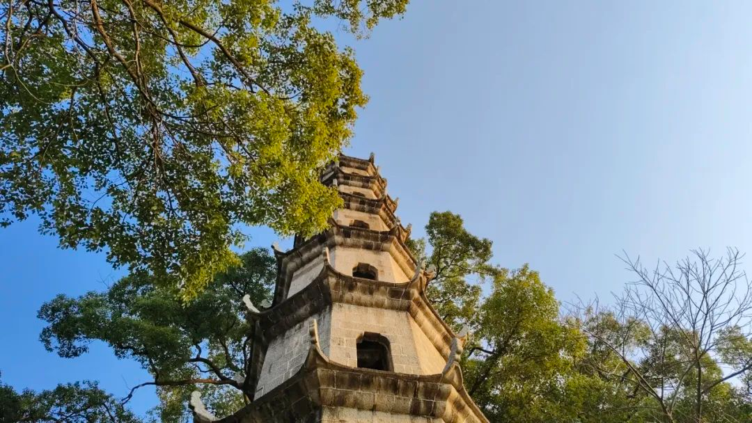 冬日的阳光,透过枝叶的间隙,洒在桃江凤凰山跃龙塔上,在绿树的簇拥下更显高大挺拔,成为冬日暖阳里一道靓丽的风景。(桃江县纪委监委供 郭益丰 摄)