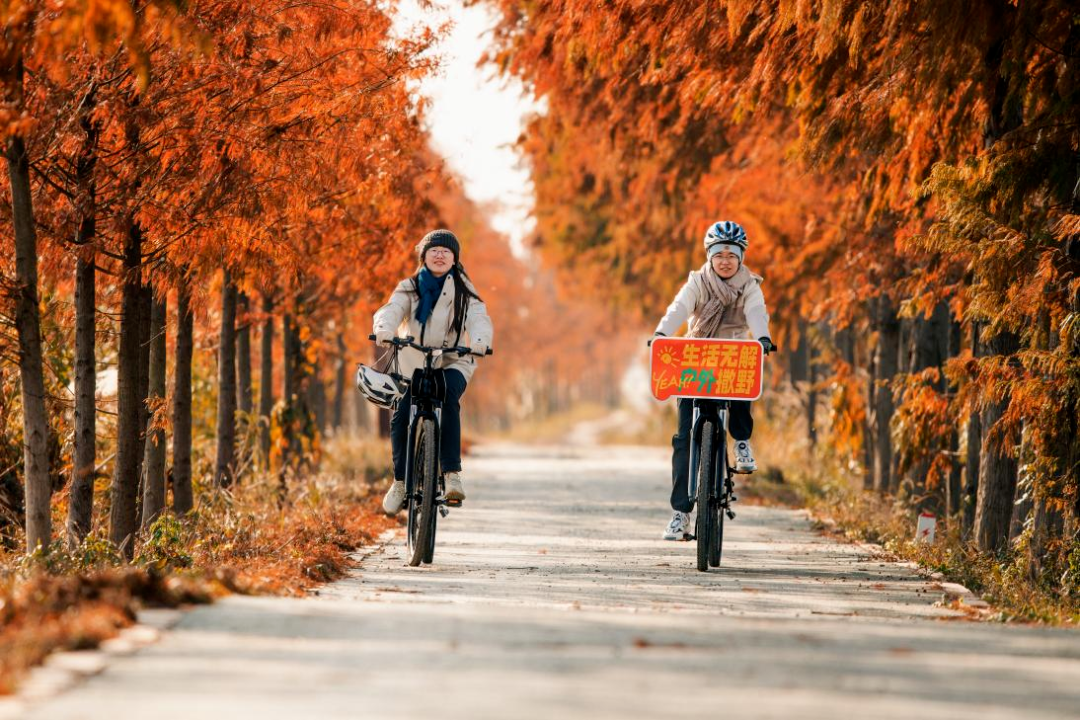 冬日的暖阳、挺拔的水杉、飘逸的芦苇、悦耳的鸟鸣以及欢快前行的骑行爱好者,共同构成了一幅生动而美丽的冬日骑行画卷。(南县文旅广体局供)