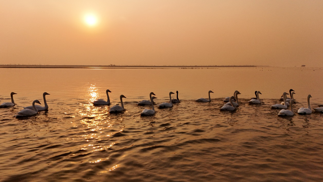 成群的候鸟来到大通湖,在大湖“月亮湾”浅滩处,觅食、嬉戏。(大通湖区纪委监察工委供 徐钢 摄)