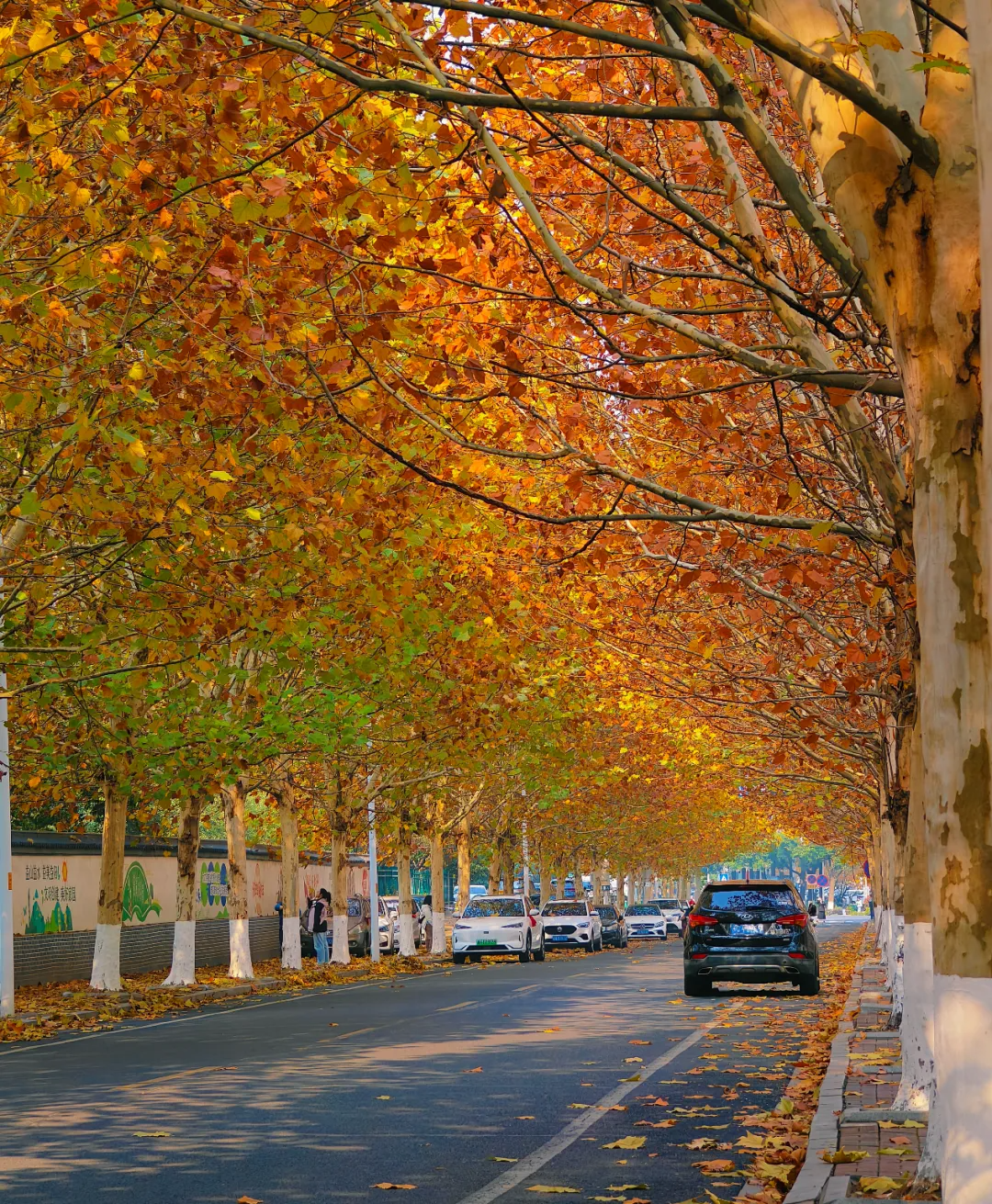 益阳市区大桃路上的梧桐树,换上了金色的衣裳,成为冬日街头一道靓丽的风景线。(赫山区沧水铺镇纪委供 梁觉 摄)