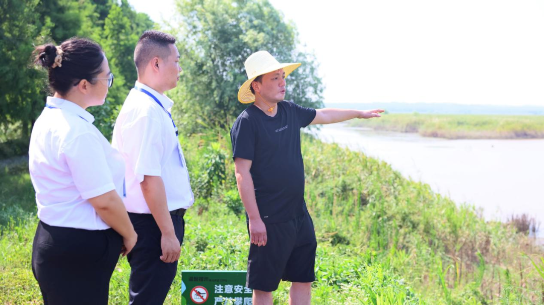 南县纪委监委立足职责定位,紧盯水环境治理、大气污染防治等重点内容及时跟进监督,压紧压实相关部门主体责任,以铁纪筑牢生态保护屏障。图为该县纪检监察干部在天星洲湿地走访了解相关情况。(南县纪委监委 汤佳怡 摄)