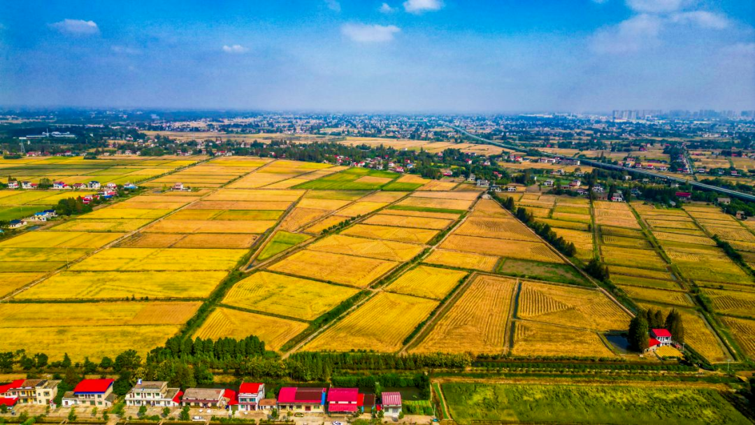 金秋十月,南县中鱼口镇的稻谷进入黄熟期,一块块稻田顺着地势铺展,像是大地亲手缝制的锦缎。(南县中鱼口镇纪委供 陈颐龄 摄)