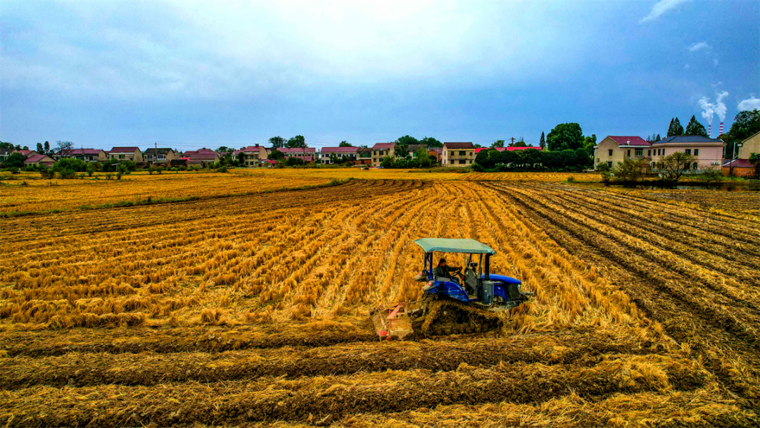 金黄稻浪间,资阳区新桥河镇的农民驾驶农机悠悠犁出丰收的纹路,远处的红瓦村落似宝石点缀其间,风过稻浪轻晃,漾开一整个田园的丰收静美,每一粒稻穗都在诉说秋日的丰盈。(资阳区大码头街道供 王琼辉 摄)