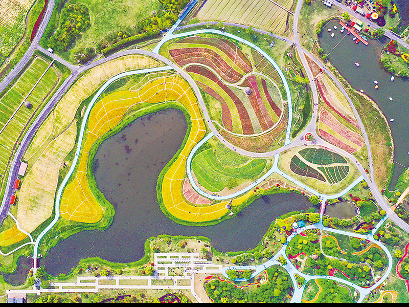 从实现第一个百年奋斗目标、全面建成小康社会到努力实现全体人民共同富裕,近年来,各地突出新发展理念和高质量发展要求,积极推进乡村振兴战略,助力农民增收,促进城乡均衡发展,为实现共同富裕打下良好基础。图为空中俯瞰杭州市余杭区径山镇的千亩缤纷花海。新华社记者 徐昱 摄