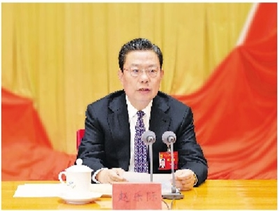 中共中央政治局常委、中央纪委书记赵乐际代表中央纪律检查委员会常务委员会作工作报告。本报记者 瞿芃 摄