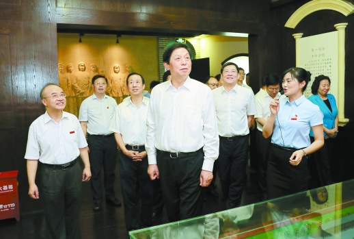 湖南具有光荣的革命传统,红色资源丰富。栗战书在省委书记、省人大常委会主任杜家毫,省委副书记、省长许达哲的陪同下来到湖南省立第一师范学校旧址,重温毛泽东等老一辈革命家在这里学习、工作和从事革命活动的经历。他说,回顾我们党98年的光辉历程,一代又一代共产党人在初心和使命上是一以贯之的,那就是矢志不渝地为中国人民谋幸福,为中华民族谋复兴。革命传统资源是我们党的宝贵精神财富,要作为开展爱国主义和党性教育的生动教材,引导广大党员干部学习党的历史、传承革命精神,进一步增强走中国特色社会主义道路、为党和人民事业不懈奋斗的自觉性和坚定性。