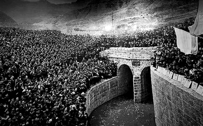 1965年4月5日,红旗渠总干渠通水,群众齐聚分水闸庆祝。(资料图片)