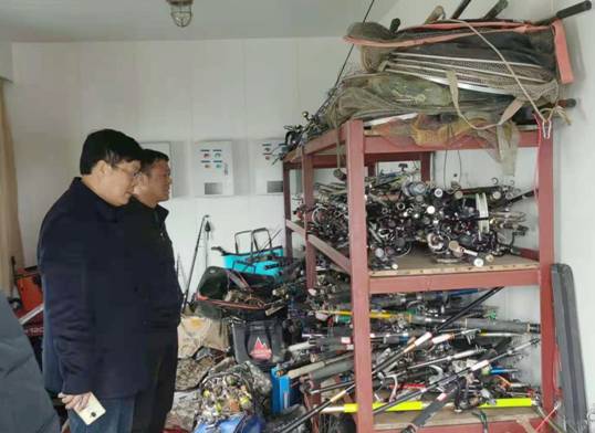督查组在资阳区渔政站查看收缴的渔具