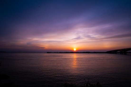洞庭湖畔,夕阳缓缓落下,天际的晚霞绚丽迷离。(沅江市纪委监委供 曹雅婷 摄)