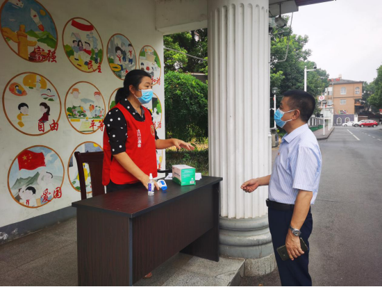 驻市委组织部纪检监察组干部在市老干部休养活动管理处检查老年大学场所封闭管理、消杀等疫情防控措施落实情况。(驻市委组织部纪检监察组供 匡丽 摄)