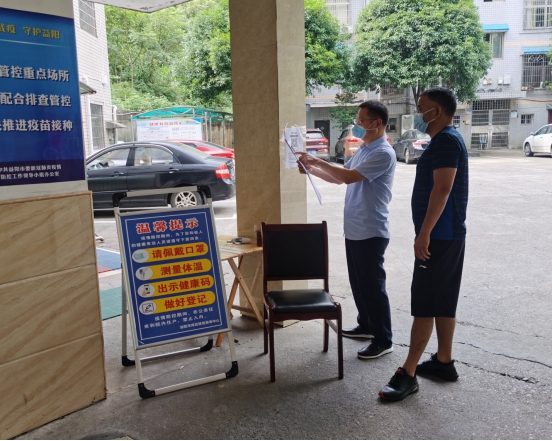 安化县纪委监委派驻住建局纪检监察组对全县物业小区、建筑工地疫情防控措施落实情况及疫苗接种情况进行督查。(安化县纪委监委供 夏亚兰 摄)