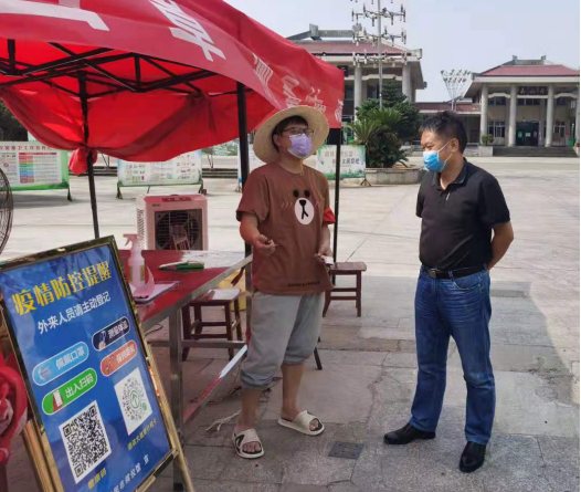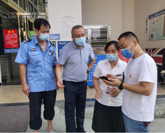 大通湖区北洲子镇纪委干部抽查相关单位“两码”查验和人员排查登记情况。(大通湖区北洲子镇纪委供 欧阳诗卉 摄)