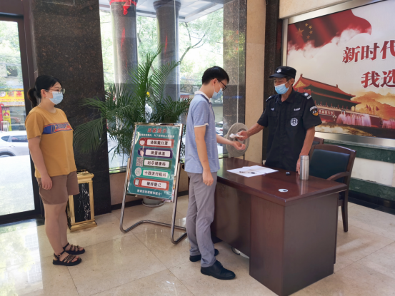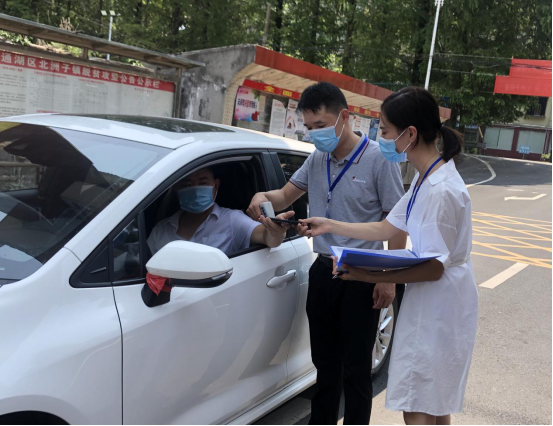 赫山区纪委监委机关严格落实疫情防控工作要求,对工作人员进行体温测量并登记。(赫山区纪委监委供 唐宁晶/摄 唐毓捷/文)