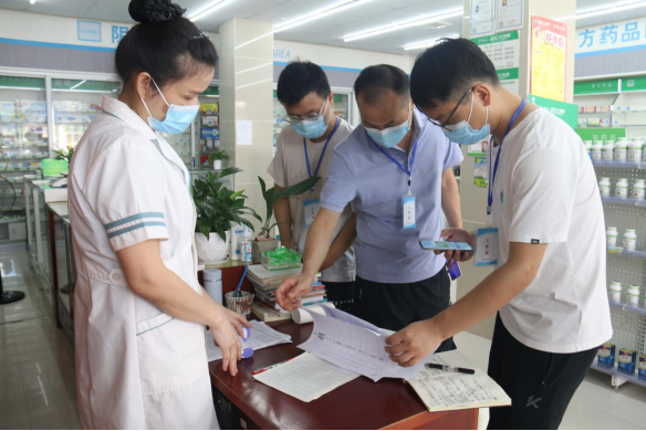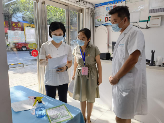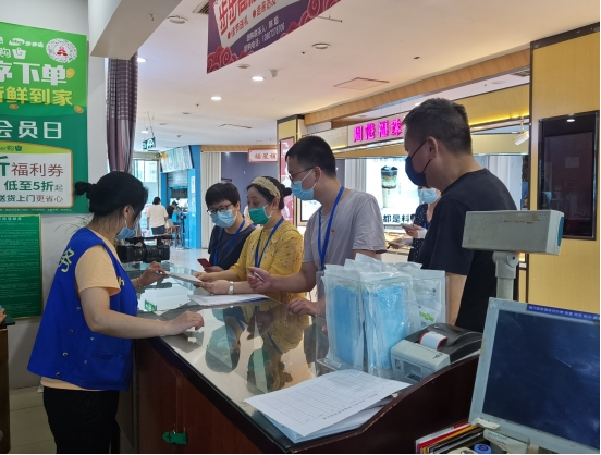南县纪委监委督查组采取不打招呼、随机抽查的方式,到南县乌嘴乡农贸市场、药店等地查看外来人员登记、疫苗接种、日常消杀等情况。(南县纪委监委供 陈玲 摄)