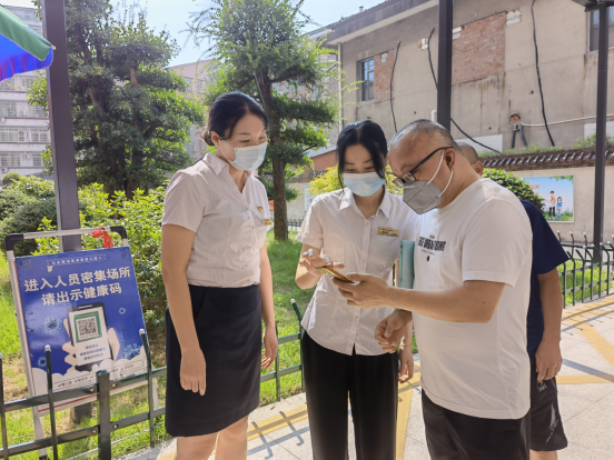 资阳区政务服务中心机关纪委干部严格按照防疫要求,检查办事群众“三码”,并叮嘱群众带好口罩,做好个人防护。(资阳区政务服务中心机关纪委供 杨曼 摄)