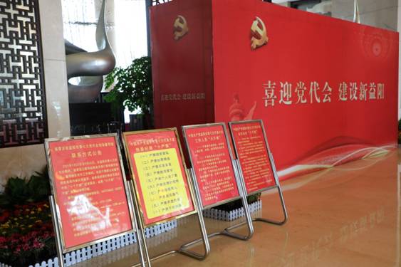 ▲在市委市政府机关大楼、党代会主会场和分会场、党代表驻地等地张贴“十严禁”“六不得”和“八不准”等换届纪律要求,设立举报箱,公布举报受理电话