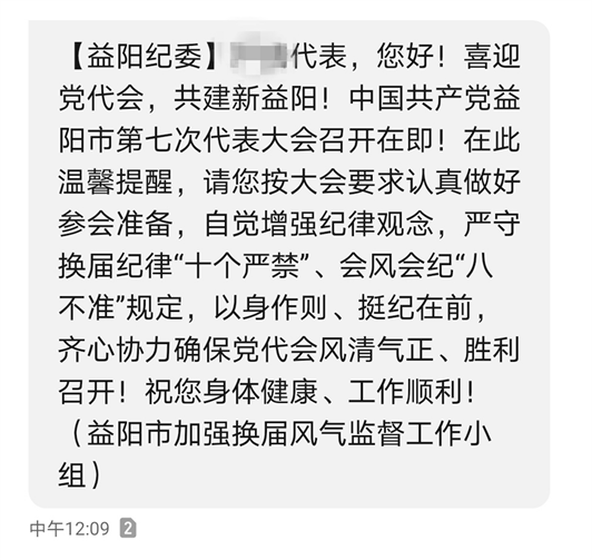 ▲会议期间每天向党代表一对一发送关于严守换届纪律的手机短信