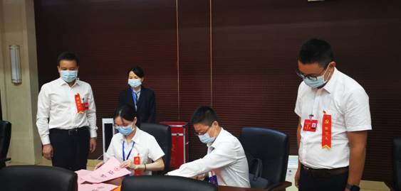 ▲在代表团第一次会议上,与会代表签订《严肃换届纪律承诺书》