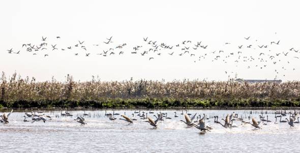 冬日的大通湖,碧波荡漾,水草丰茂,天鹅、罗纹鸭、红嘴鸥、苍鹭、白鹭等20余种鸟类在这里过冬,或惬意觅食,或踏波逐浪,或展翅翱翔,为萧瑟的寒冬带来生机与活力。