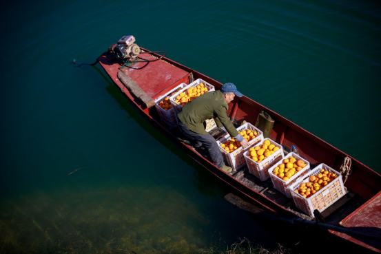 冬日的安化柘溪水库,果农开着自己的小船把丰收的喜悦带去集市。(安化县残联供 刘智纯 摄)