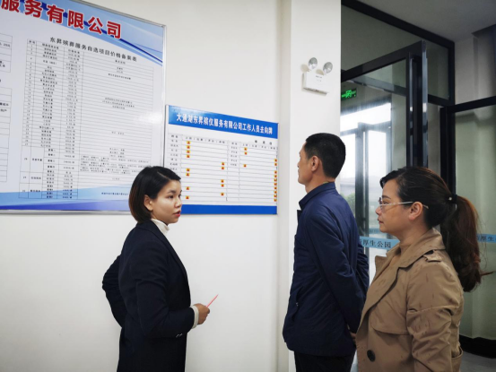 大通湖区纪委区监察工委派驻区发改财政局纪检监察组对大通湖区东昇殡仪馆作风纪律、服务接待群众和殡葬惠民政策执行情况进行监督检查。图为纪检监察组干部在查看工作人员去向牌。(大通湖区纪委区监察工委 谢冬英 摄)