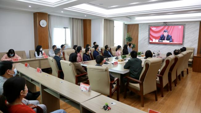 大通湖区纪委区监察工委组织在家的青年纪检监察干部集中收看共青团成立100周年大会。