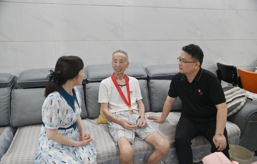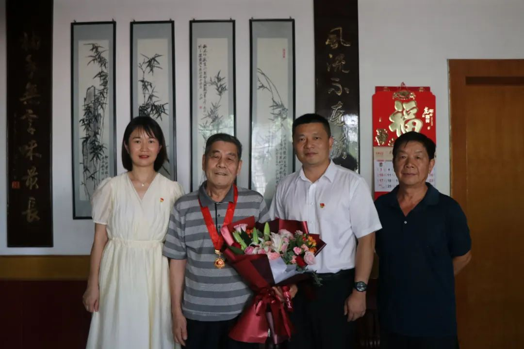 资阳区纪委监委走访慰问退休老党员蒋谷初,为他送上“光荣在党50年”纪念章。