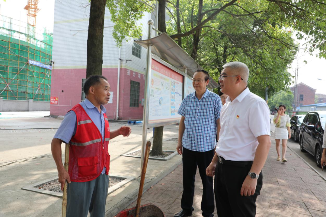欧阳艳与环卫工人亲切交谈,了解其工作和生活情况,感谢他们为城市干净、整洁付出的辛勤努力,并叮嘱做好防暑降温措施。