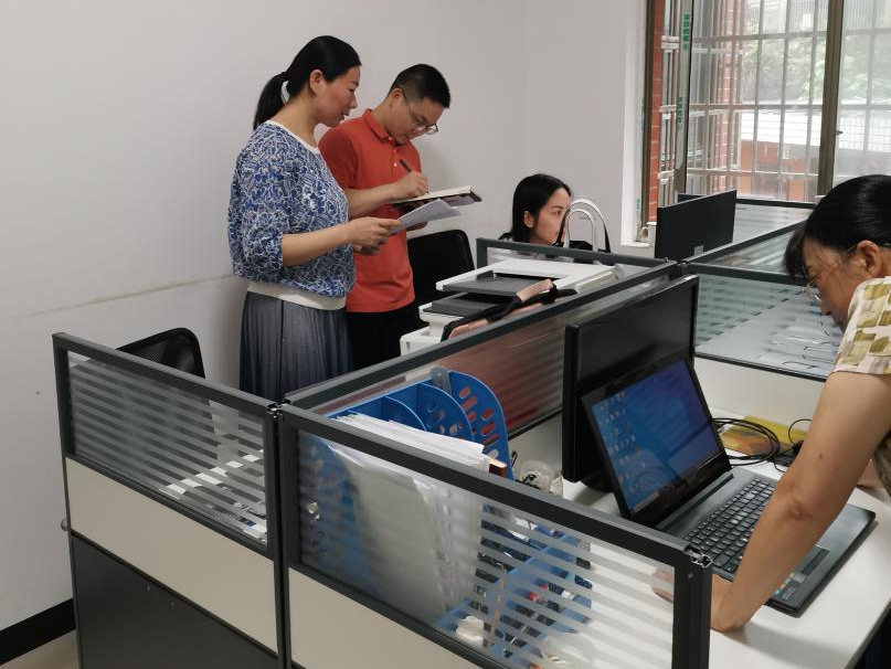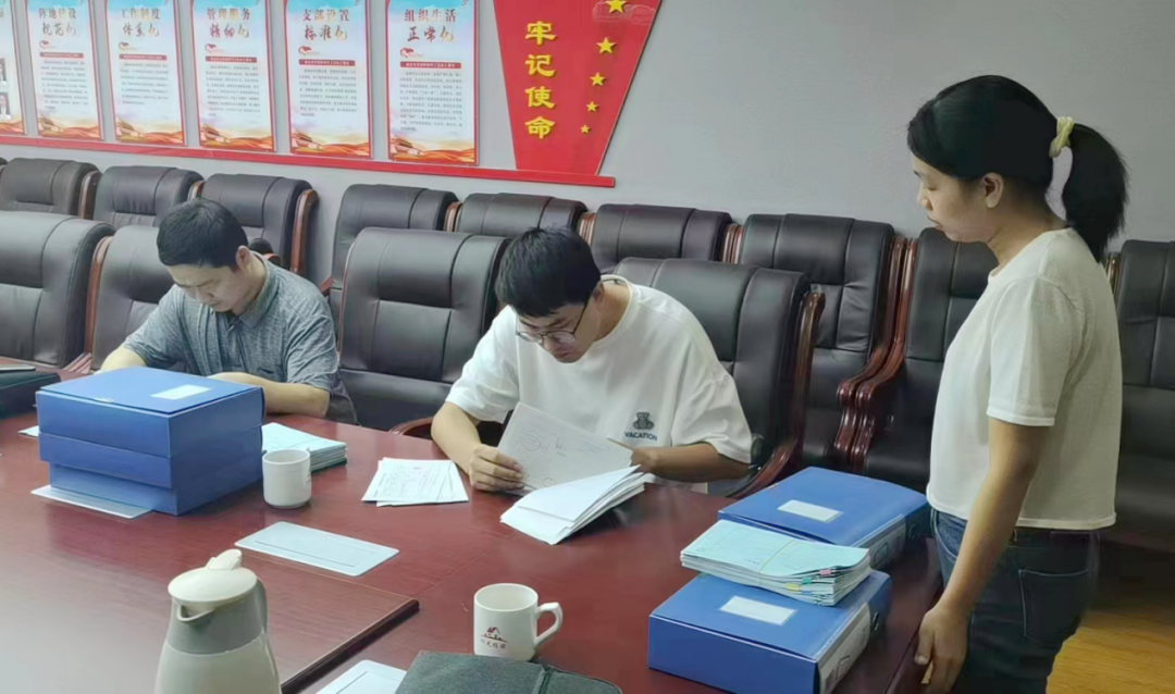 市纪委监委把握节日时间节点,紧盯隐形变异“四风”问题。图为市纪委监委党风政风监督室督查人员在安化县住房保障中心查看财务凭证。(市纪委监委党风政风监督室)