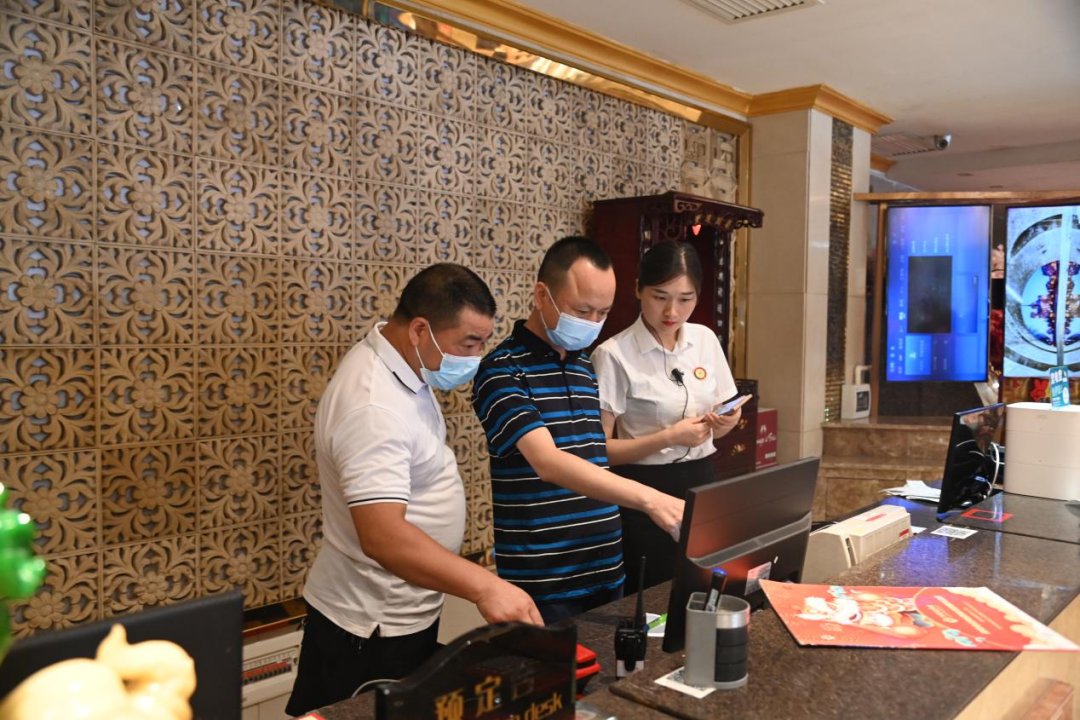 资阳区纪委监委通过明察暗访、后台查询、随机抽查等方式,对“天价”月饼和蟹卡蟹券等节礼背后“四风”问题紧盯不放。图为督查组在餐饮酒店检查是否存在公款吃喝等问题。(资阳区纪委监委 陈慧 摄)