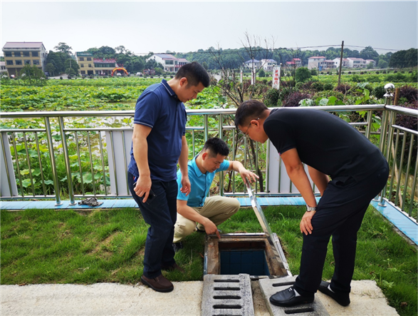 驻市住建局纪检监察组对全市78个乡镇污水处理厂建设开展跟踪督查,图为该组在赫山区笔架山污水处理站查看污水处理情况。(驻市住建局纪检监察组供 方瑜 摄)