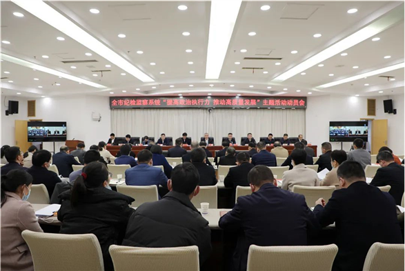 图为2022年3月4日全市纪检监察系统召开“提高政治执行力 推动高质量发展”主题活动动员会议