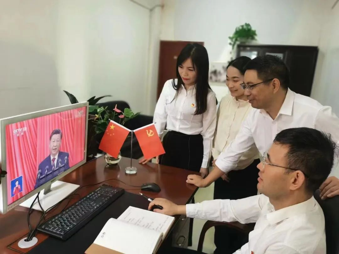 大通湖区纪委区监察工委全员集中收看开幕会。(大通湖区纪委区监察工委 蔡心 摄)