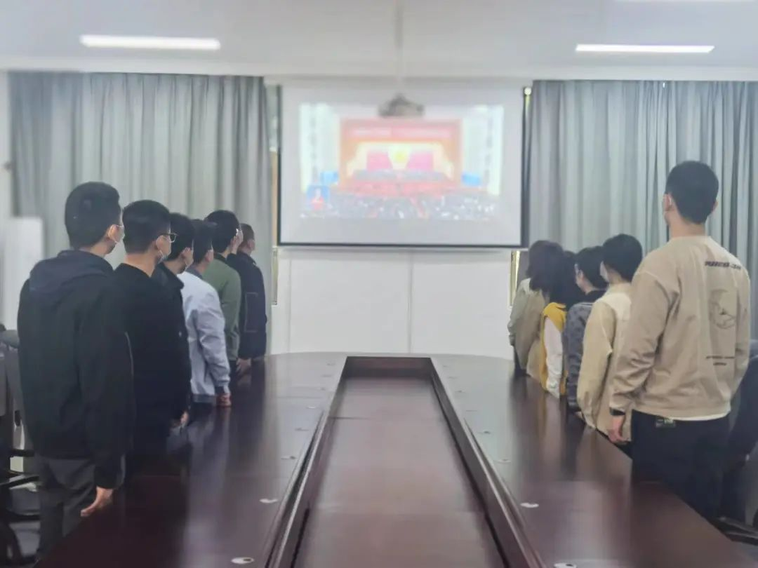 市纪委监委第九审查调查室组织办案一线干部收看开幕会。国歌响起,全体肃立。(市纪委监委 杨洁 摄)