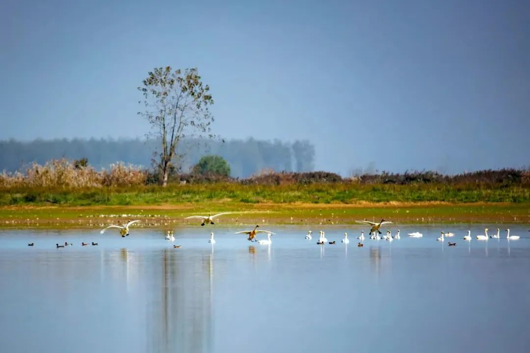 湖南省益阳市纪委监委通过开展“洞庭清波”专项行动,严肃查处环境污染背后的责任、作风和腐败问题,推动洞庭湖生态环境持续改善。图为候鸟在南洞庭车便湖水域栖息觅食。熊朝阳 摄
