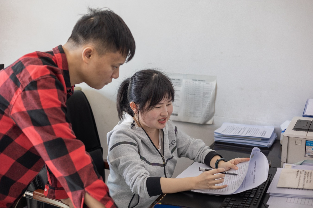 南县纪委监委党风政风监督室干部将党的二十大报告打印出来认真学习,对报告提出的新理念、新论断划线标记、重点研读,并与同事开展讨论交流。