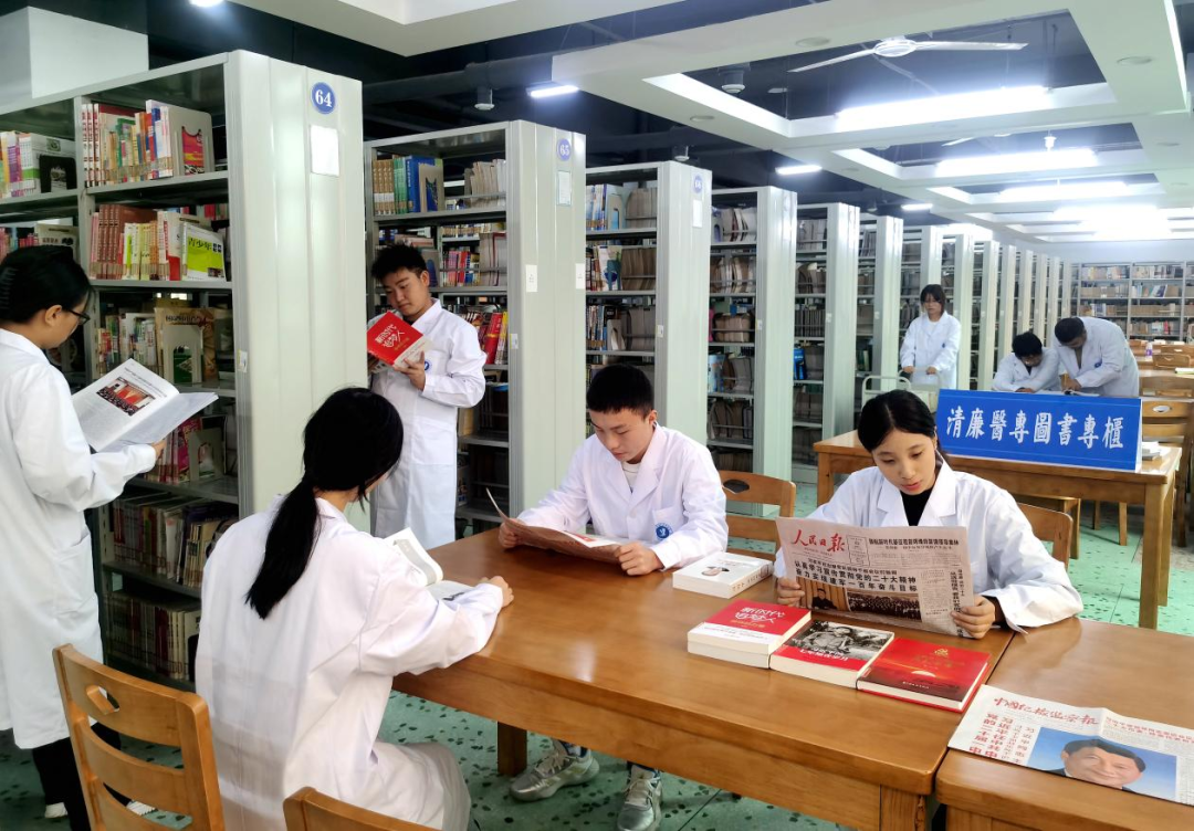 益阳医专纪委在学校图书馆建立“清廉医专图书专柜”,让清廉文化走进校园、滋养心灵,同时依托这一阵地学习宣传党的二十大精神,进一步提升医学生理论素养。(益阳医专纪委 龙焕明 摄)