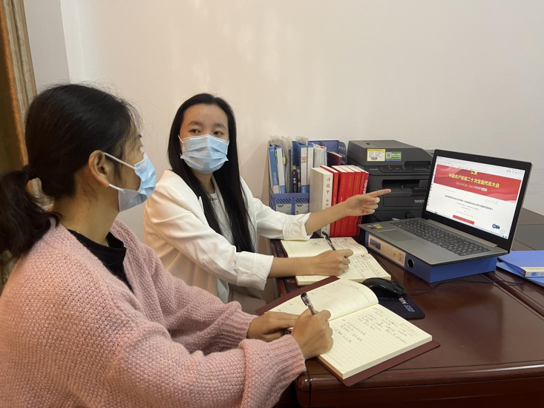 赫山区委第一巡察组青年干部通过网络反复研学党的二十大精神。(赫山区委第一巡察组 闵志文 摄)