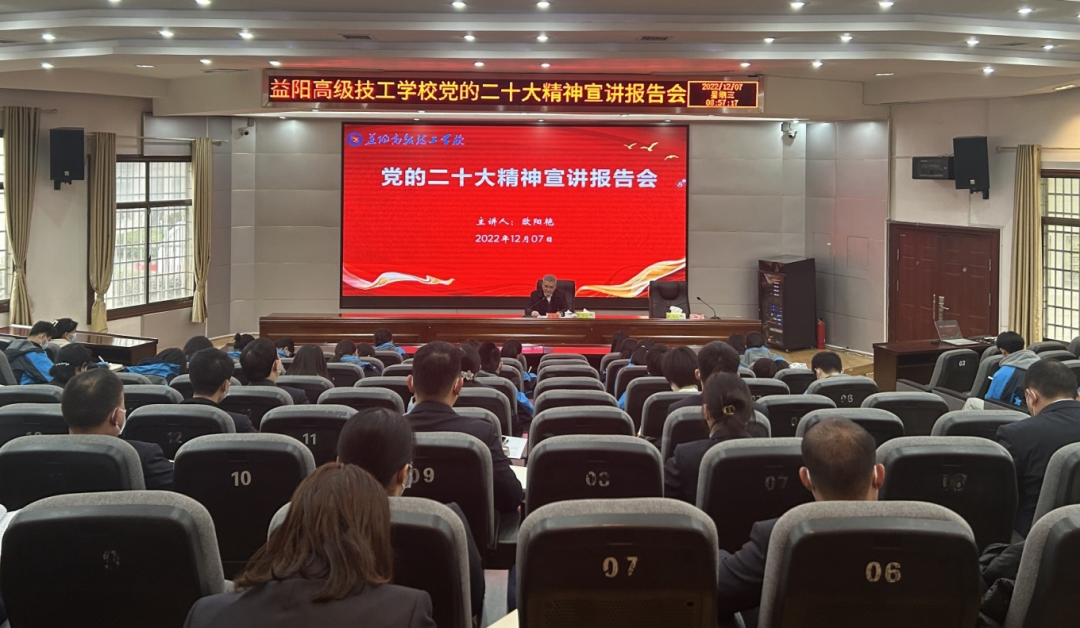 12月7日,市委常委、市纪委书记、市监委主任欧阳艳赴益阳高级技工学校,宣讲党的二十大精神。