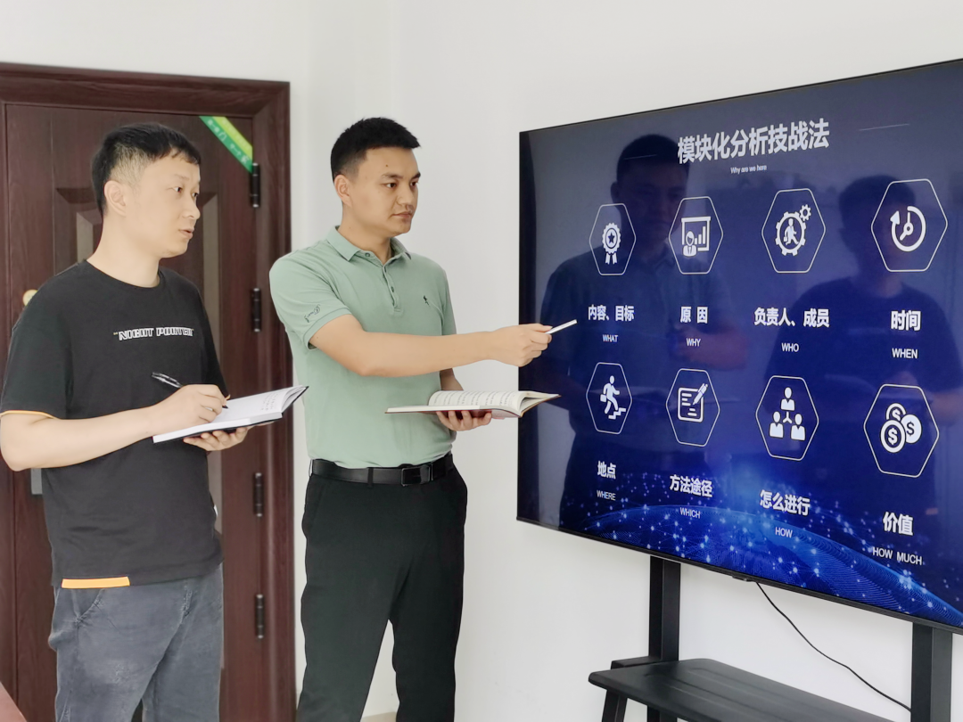 市纪委监委信息技术保障室“传帮带”责任人与结对干部在研究战法,互相促进,共同提高。(何岳峰 摄)