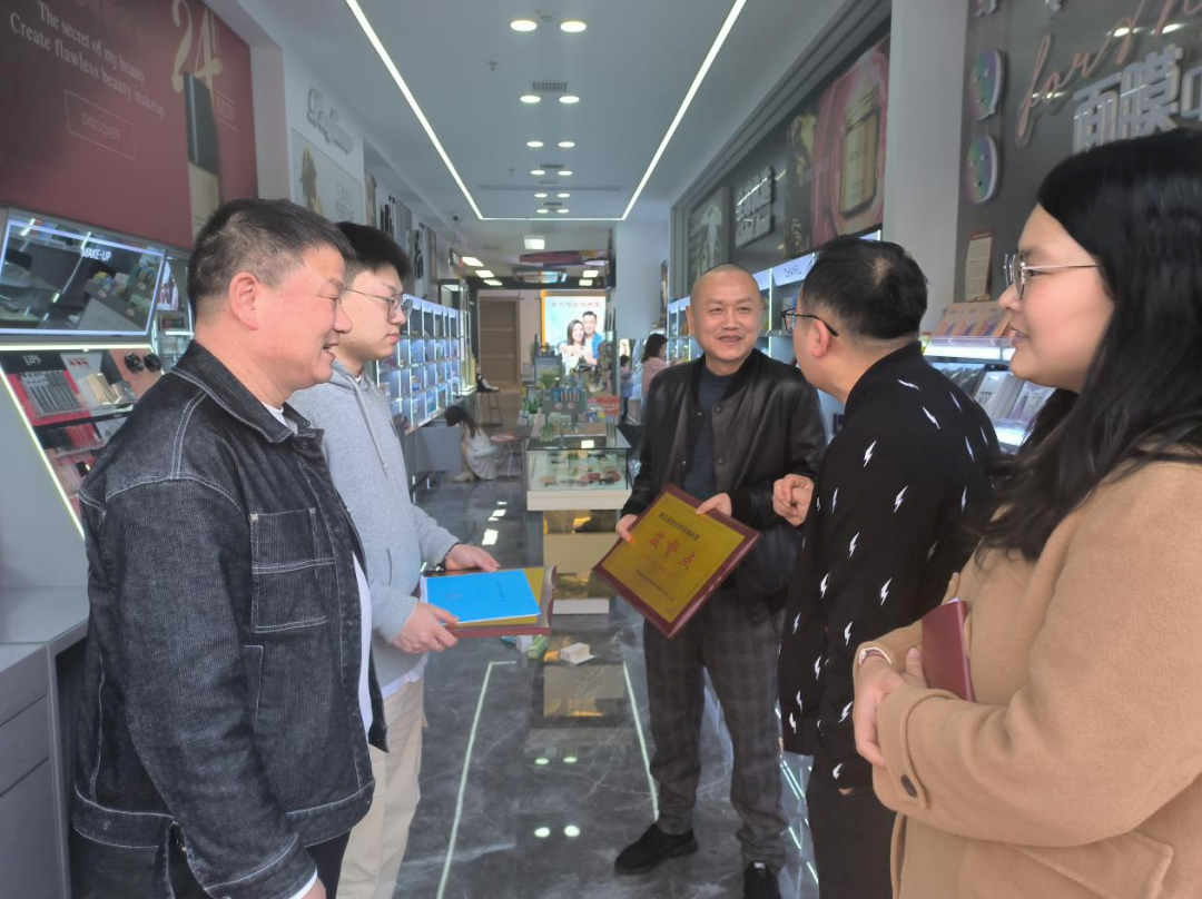 图为南县纪委监委和县优化办工作人员上门走访营商环境监督点南县南洲米兰化妆品门店了解相关情况。