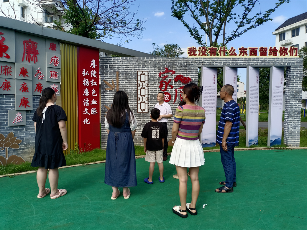 盛夏时节,走进资阳区迎风桥镇张国基家风家训廉洁文化广场,“清风廊”里一条条廉洁标语、一个个家风故事,吸引了不少群众驻足观看。这一廉洁文化阵地设置“一广场一陈列馆一长廊”,把廉洁成语组词趣味墙、“百廉图”与广场园林景观有机融合,打造成独具特色的“廉洁地标”。