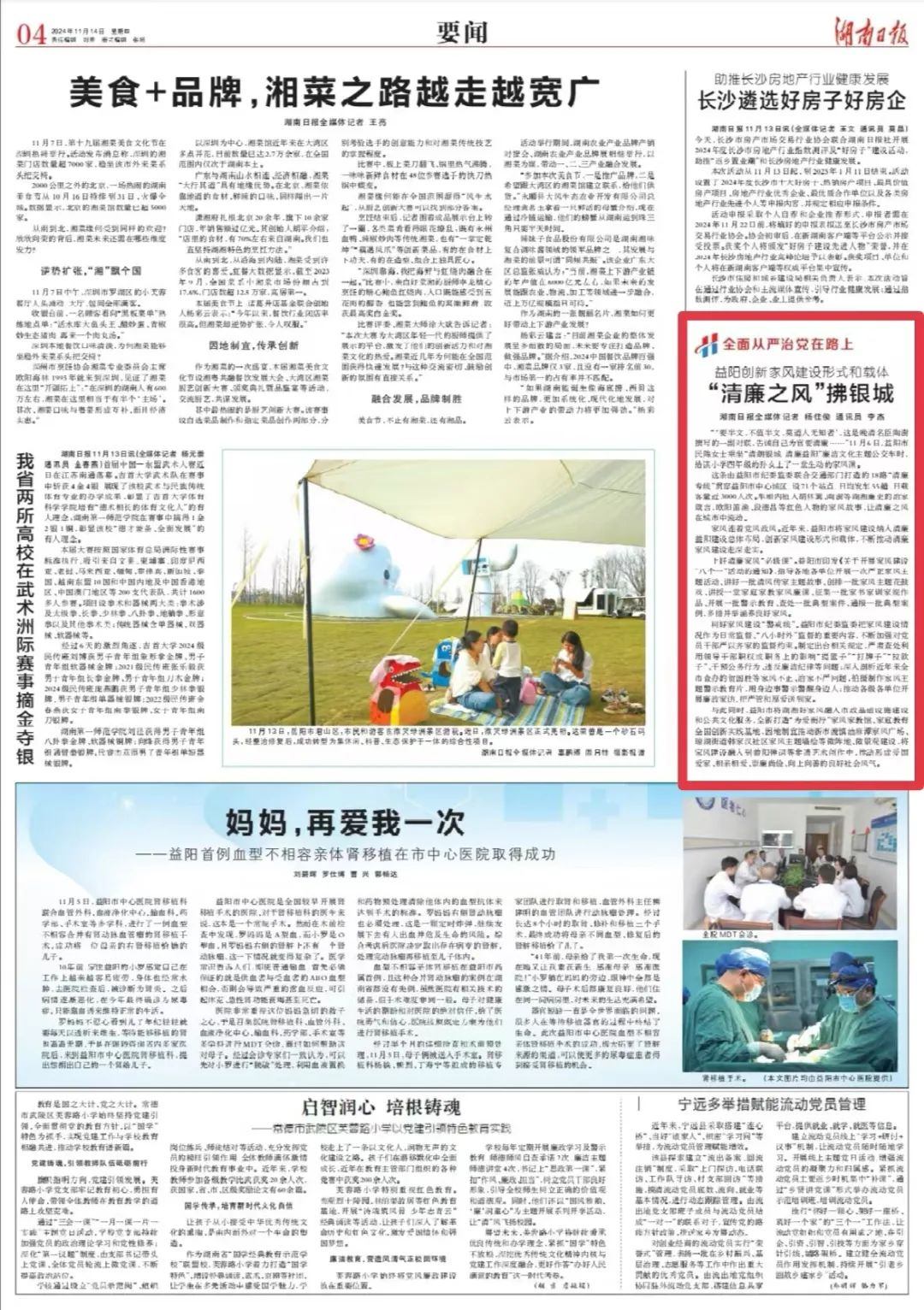上好清廉家风“必修课”。益阳市印发《关于开展家风建设“八个一”活动的通知》,指导各地各单位开展一次严正家风主题活动、讲好一批清风传家主题故事、创排一批家风主题花鼓戏、讲授一堂家庭家教家风廉课、征集一批家书家训家规作品、开展一批警示教育、查处一批典型案件、通报一批典型案例,多措并举涵养良好家风。