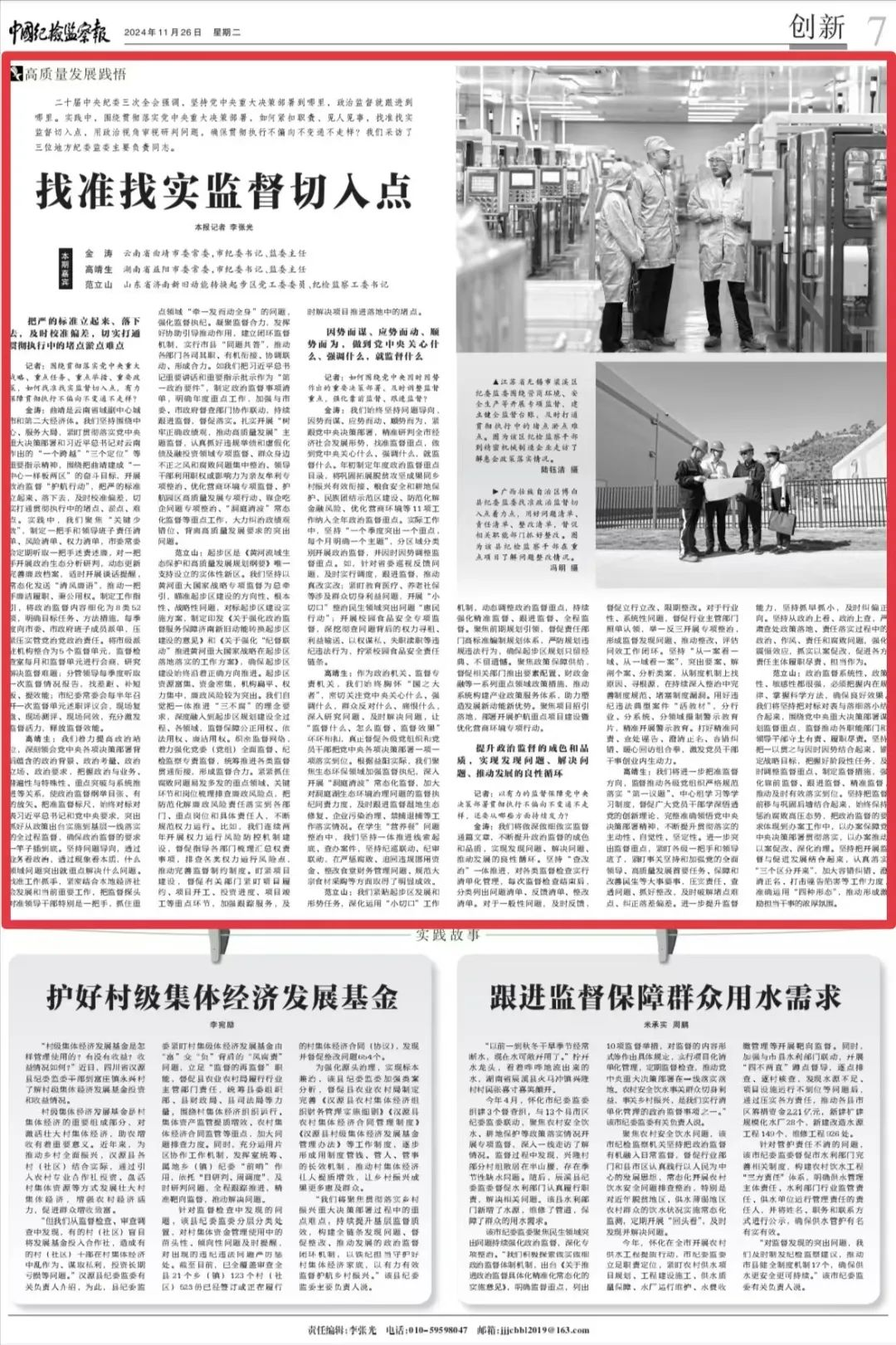 金涛:我们将做深做细做实监督通篇文章,不断提升政治监督的成色和品质,实现发现问题、解决问题、推动发展的良性循环。坚持“查改治”一体推进,对各类监督检查实行清单化管理,每次监督检查结束后,分类列出问题清单、反馈清单、整改清单。对于一般性问题,及时反馈,督促立行立改、限期整改。对于行业性、系统性问题,督促行业主管部门照单认领,举一反三开展专项整治,形成监督发现问题、推动整改、评估问效工作闭环。坚持“从一案看一域、从一域看一案”,突出要案、解剖个案、分析类案,从制度机制上找原因、寻根源,在持续深入整治中完善制度规范、堵塞制度漏洞。用好违纪违法典型案件“活教材”,分行业、分系统、分领域摄制警示教育片,精准开展警示教育。打好精准问责、查处诬告、澄清正名、容错纠错、暖心回访组合拳,激发党员干部干事创业内生动力。