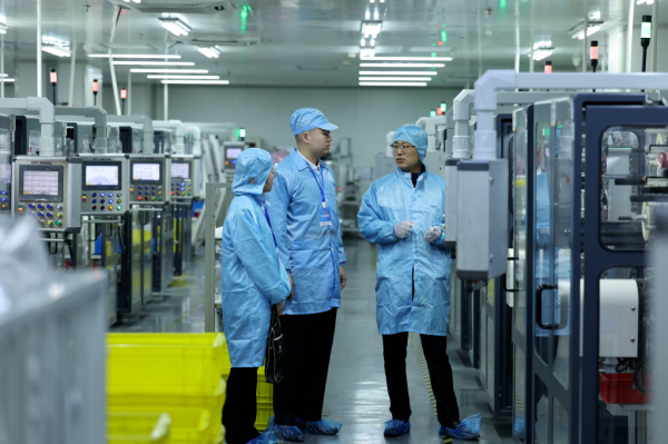 江苏省无锡市梁溪区纪委监委围绕营商环境、安全生产等开展专项监督,建立健全监督台账,及时打通贯彻执行中的堵点淤点难点。图为该区纪检监察干部到精密机械制造企业走访了解惠企政策落实情况。陆钰洁 摄