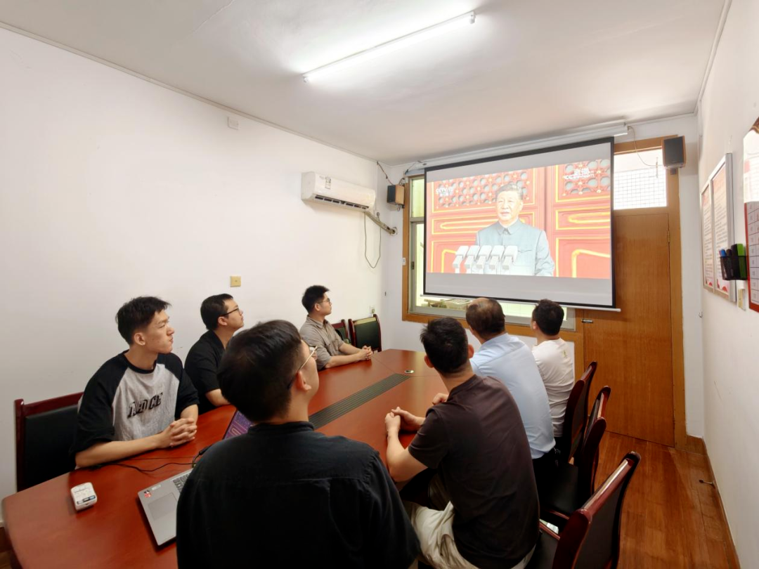 奋战在审查调查一线的市纪委监委各专案组成员集中收看大会直播,汲取奋斗力量、弘扬伟大抗战精神。(市纪委监委 汤莎 摄)