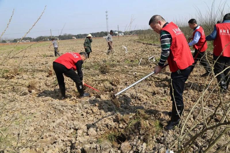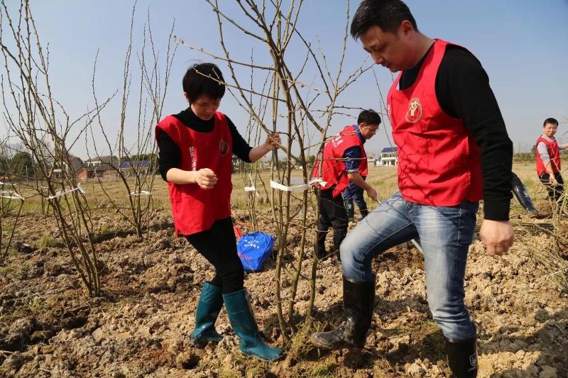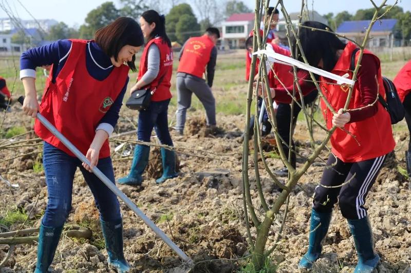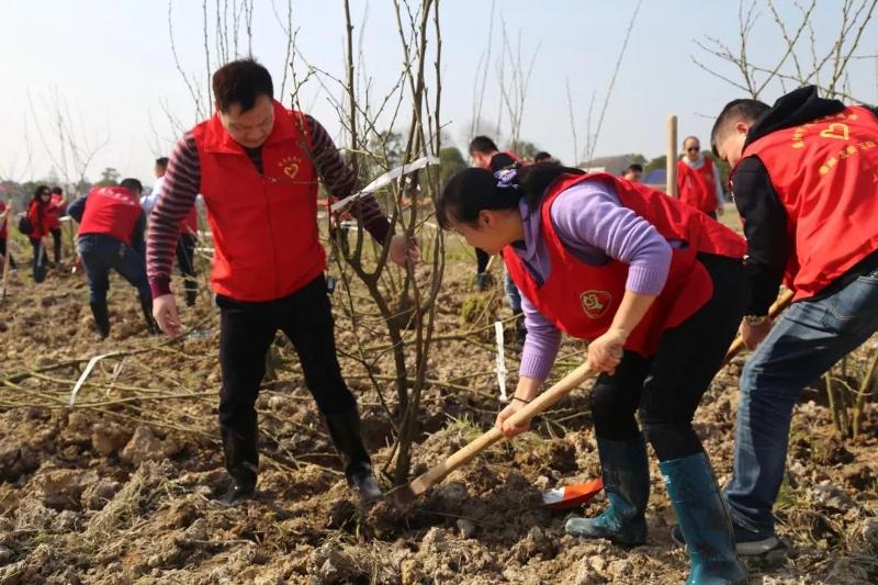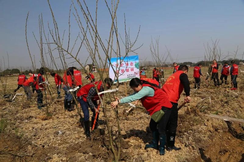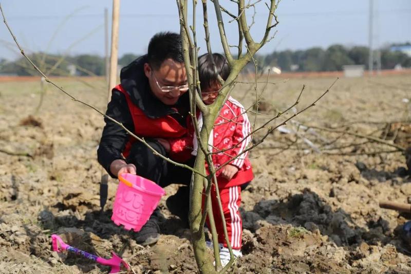 植树现场,大家分工协作、相互配合,有的挥锹铲土、有的扶苗校正、有的填土栽树,每一环节都一丝不苟,流下了自己的汗水,贡献了一份力量,为春天增添了一抹绿色。